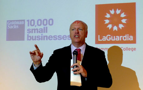 Durante la conferencia de prensa en LaGuardia Community College, la primera institución que comenzó con este programa de 10,000 Small Businesses, se presentó un video explicativo. El programa se concentra en educación empresarial y gerencial, acceso a capital y apoyo a nivel de negocios.