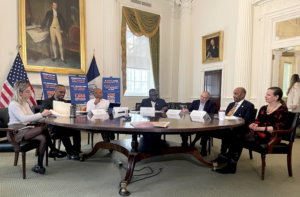 El alcalde Adams se reunió con representantes de la prensa étnica y con un grupo de sus más allegados colaboradores.