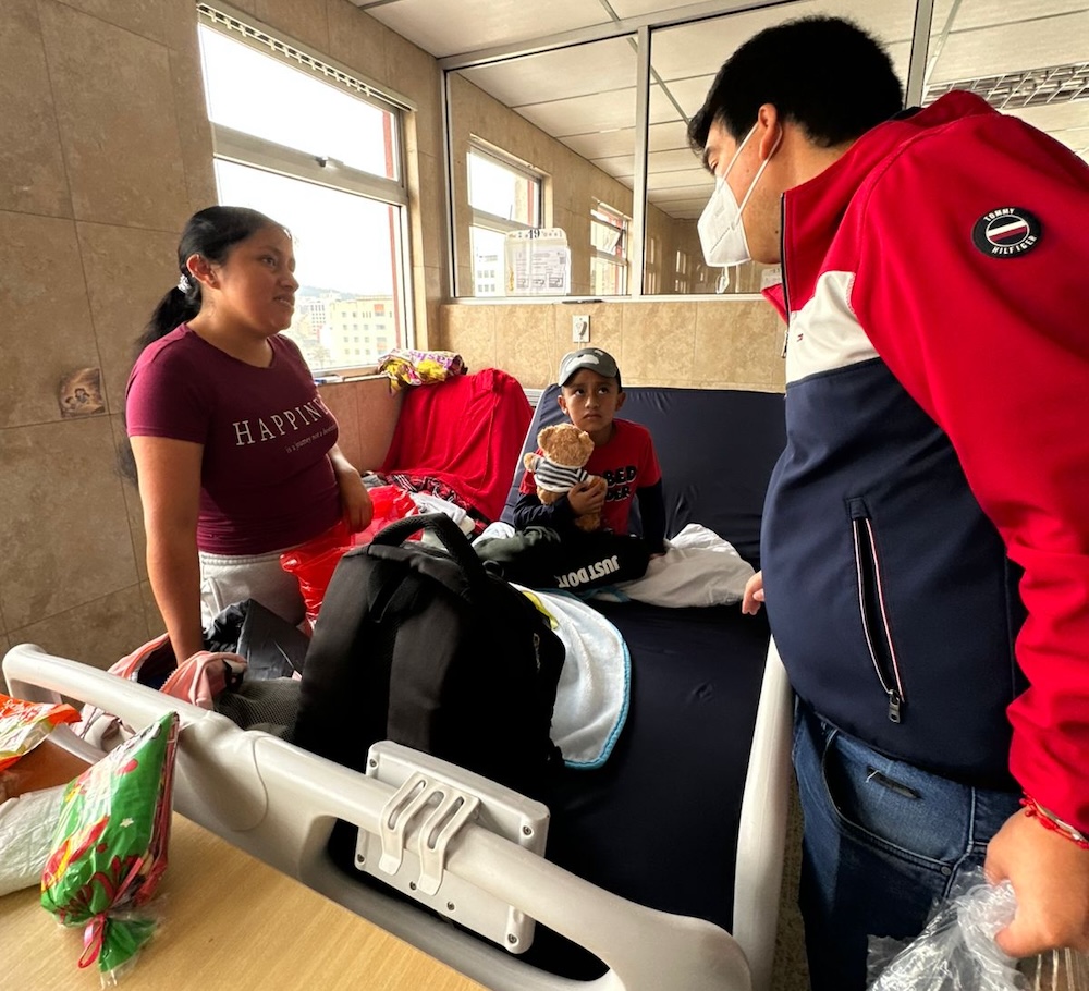 La niñez ecuatoriana recibiendo en el Hospital Baca Ortiz de Quito el calor de la Fundación Altamirano.