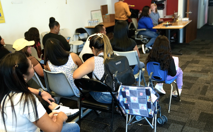Escena en la sala de espera del clausurao Centro de Solicitud de Asilo en Manhattan, en el 2023. ( Foto Michael Appleton, alcaldía NYC)
