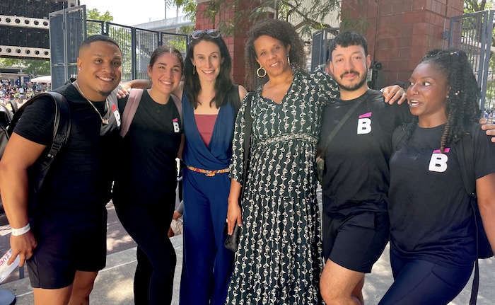 Natalia Mesa y Tamia Santana, directivas de Ballet Hispánico, acompañadas por los bailarines Marcus, Mari, Ruddy y Taylor.