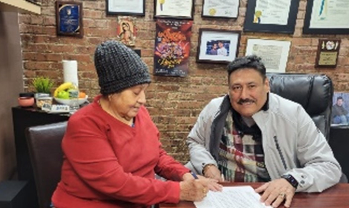 Firma del convenio el 9 de diciembre de 2022 entre la Sra. Patricia Hernández, fundadora de Comité Cívico Mexicano – Mexican Day Parade y Sr. Pedro Zamora, fundador de MECENAS (Mexican Cultural Expressions National Society). Foto cortesía