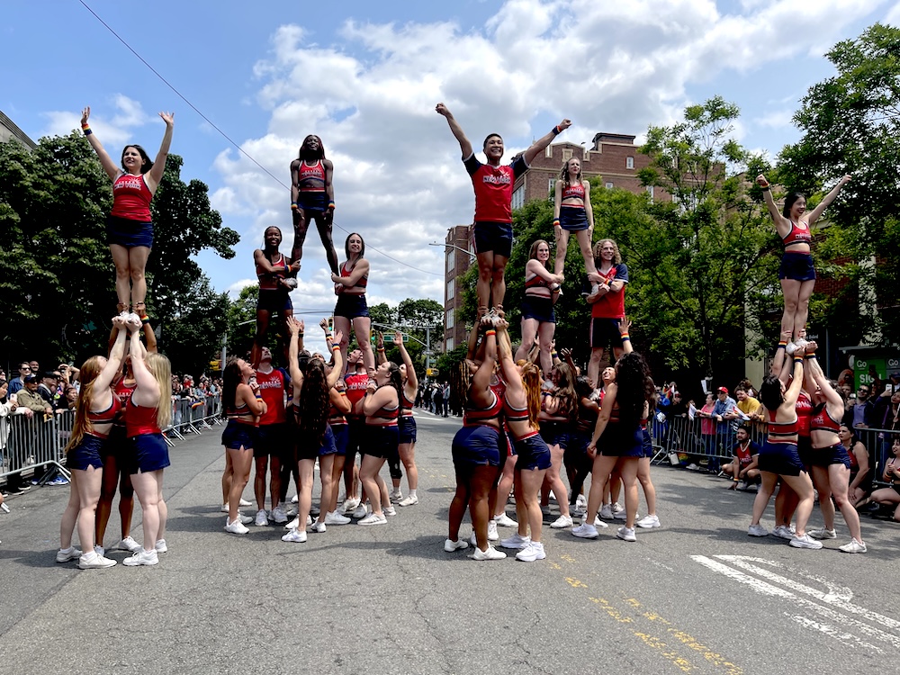 La agrupación Cheer New York haciendo acrobacia.