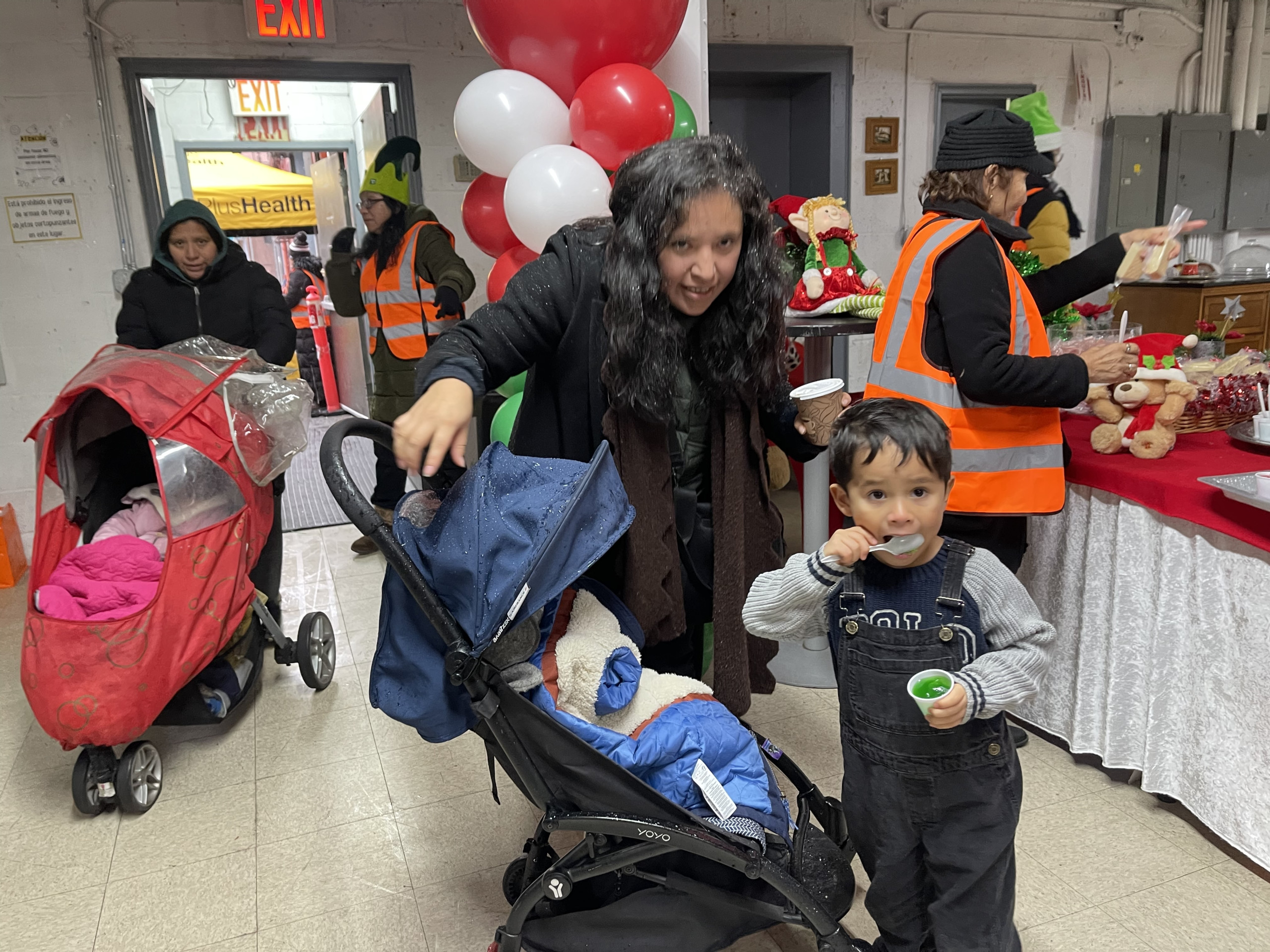 “He seguido a esta organización desde que repartían comida en la 34 Avenida de Jackson Heights y ahora que están en Corona”, dijo Jacqueline Cosme mientras empujaba el cochecito con su hijo Sebastián de 3 años. “Aquí siempre nos han ayudado”.