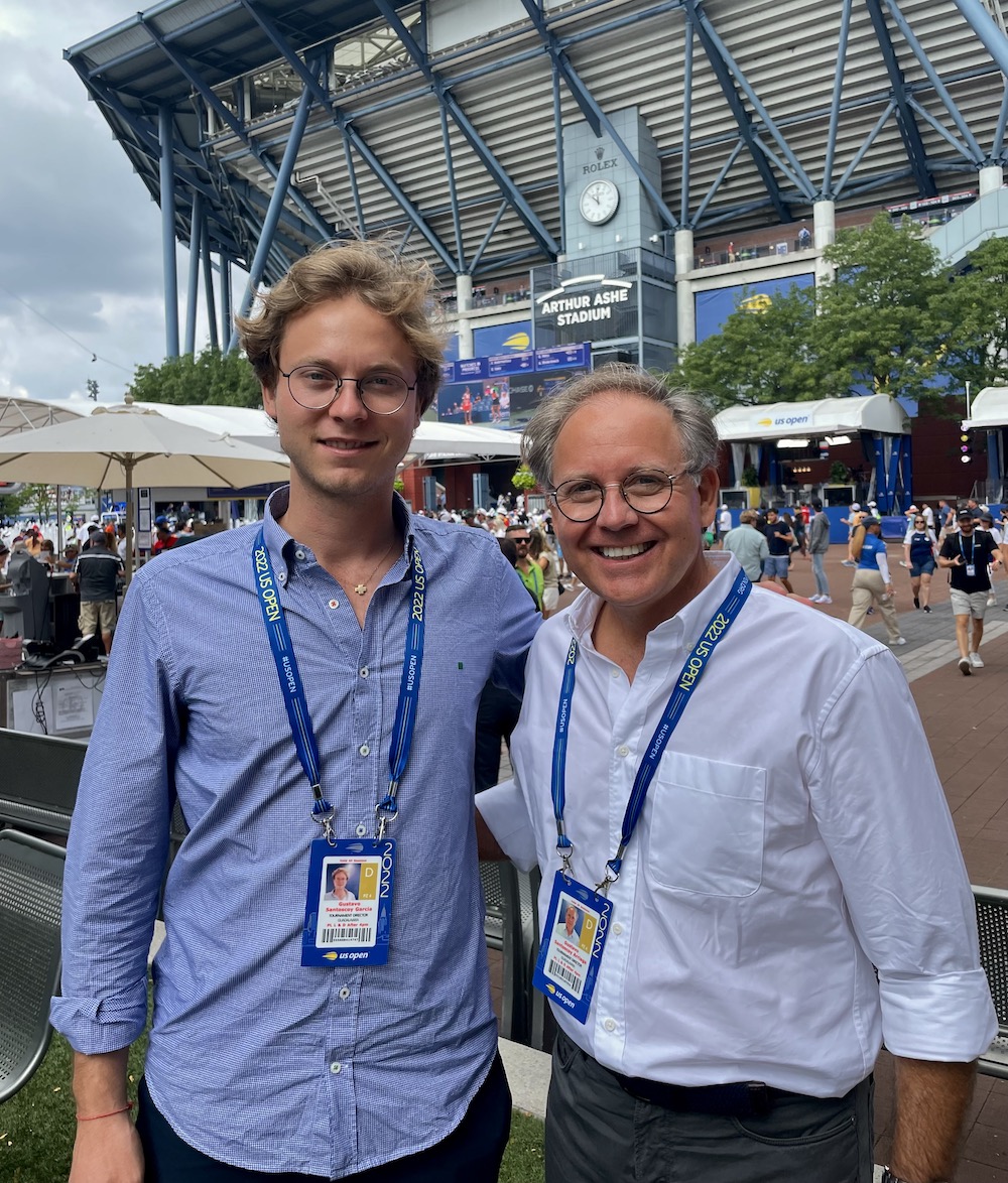 Gustavo Santoscoy (der) y su hijo Gustavo Jr., en el US Open 2022. Su torneo GDL Open Akron WTA 1000, en Guadalajara, México, marca un hito en el tenis latinoamericano. Foto Marcela Alvarez