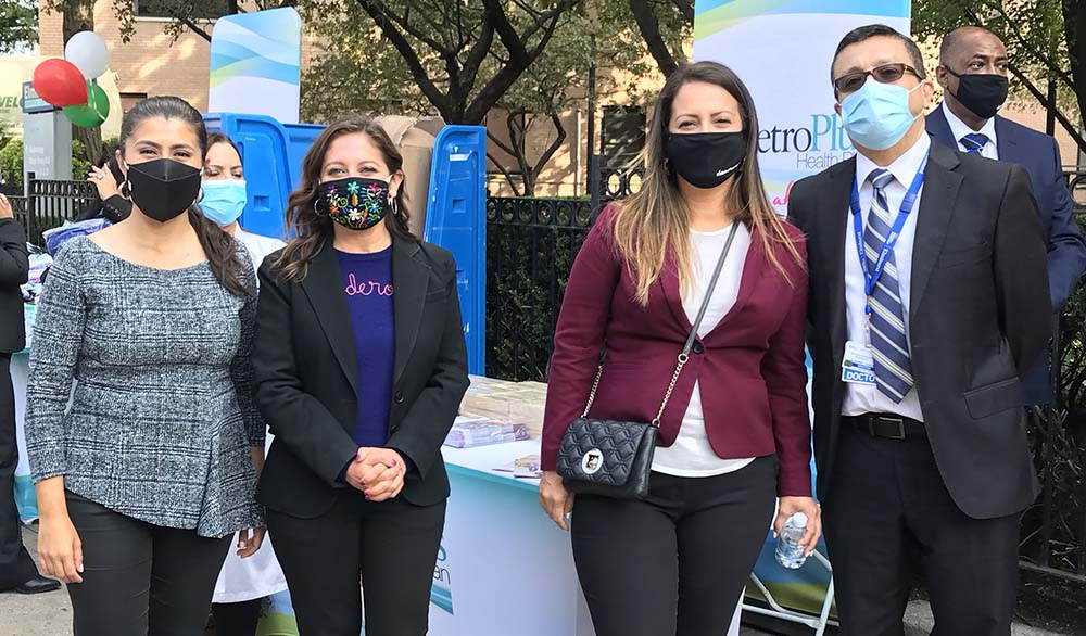 Guardando la distancia y vistiendo tapabocas, decenas de latinos acudieron al Hospital Elmhurst el viernes de esta semana a celebrar el Mes de la Herencia Hispana.