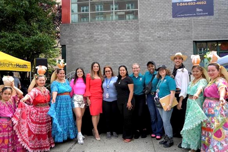 Helen Arteaga-Landaverde, CEO del Hospital Elmhurst, rodeada del personal de ESPY, políticos y miembros del grupo de danzas local.