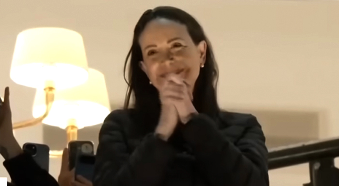 Machado, implacable crítica de Maduro, salió a saludar desde el balcón de su hotel después de las 02H00 (01H00 GMT), recibiendo una ovación. Luego cantó con la gente el himno nacional de Venezuela.