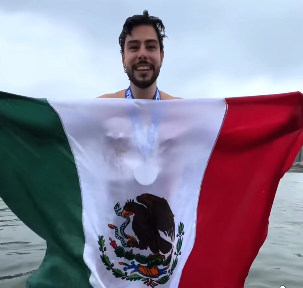 David Olvera López ondeó la bandera mexicana con orgullo luego de nadar alrededor de Manhattan e imponer récord mundial.