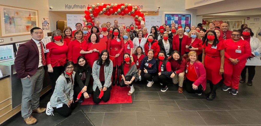 El personal del hospital Mount Sinai de Astoria, Queens, vistió de rojo durante el día Go Red el padado viernes 2 de enero.