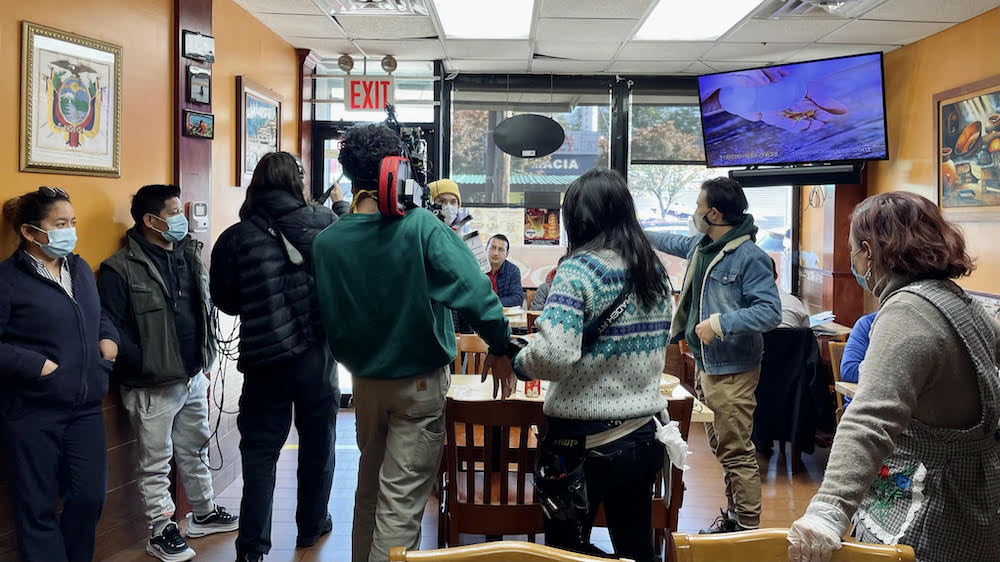 Escena del rodaje de la película ÑAÑOS en un restaurante de Queens, filmada durante la pandemia y que se estrena este verano. Fotos cortesía