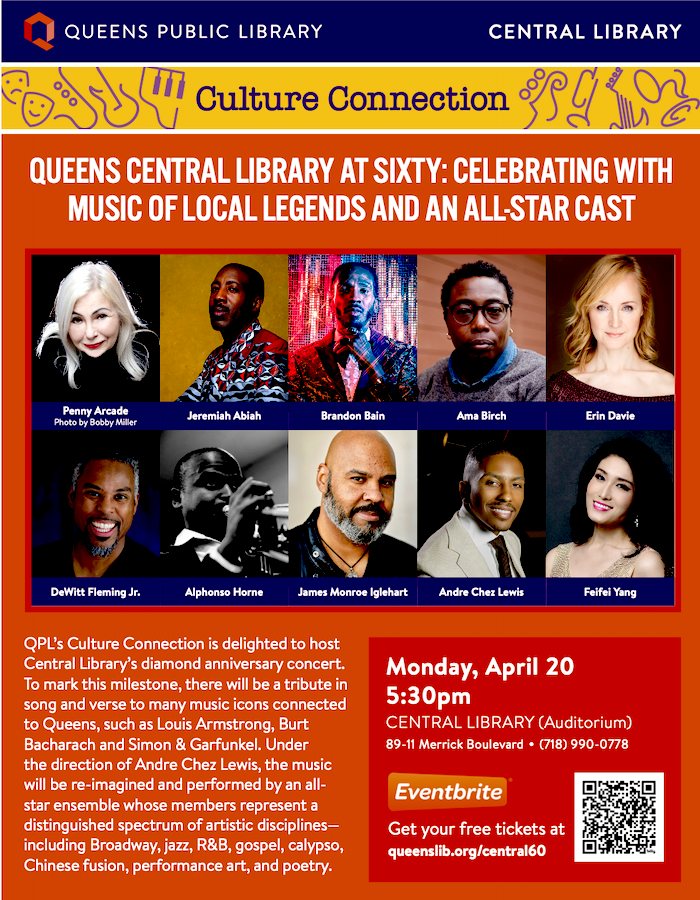 La celebración concluirá con “Queens Central Library at Sixty: Celebrando con la música de leyendas locales y un elenco estelar”, un concierto que incluirá Broadway, jazz, R&B y góspel, y rendirá homenaje a artistas como Louis Armstrong, Burt Bacharach y Simon & Garfunkel.