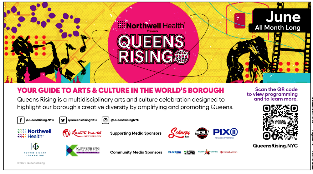“No hay un lugar como Queens cuando nos referimos al arte y la cultura y me siento muy contento que Queens Rising haya regresado este año con el fin de recibir a todas las personas que visiten nuestro condado y quieran experimentar nuestra riqueza y variedad cultural”, dijo Donovan Richard, presidente del condado de Queens. “Esperamos que participe de estos eventos con su familia y amigos”.