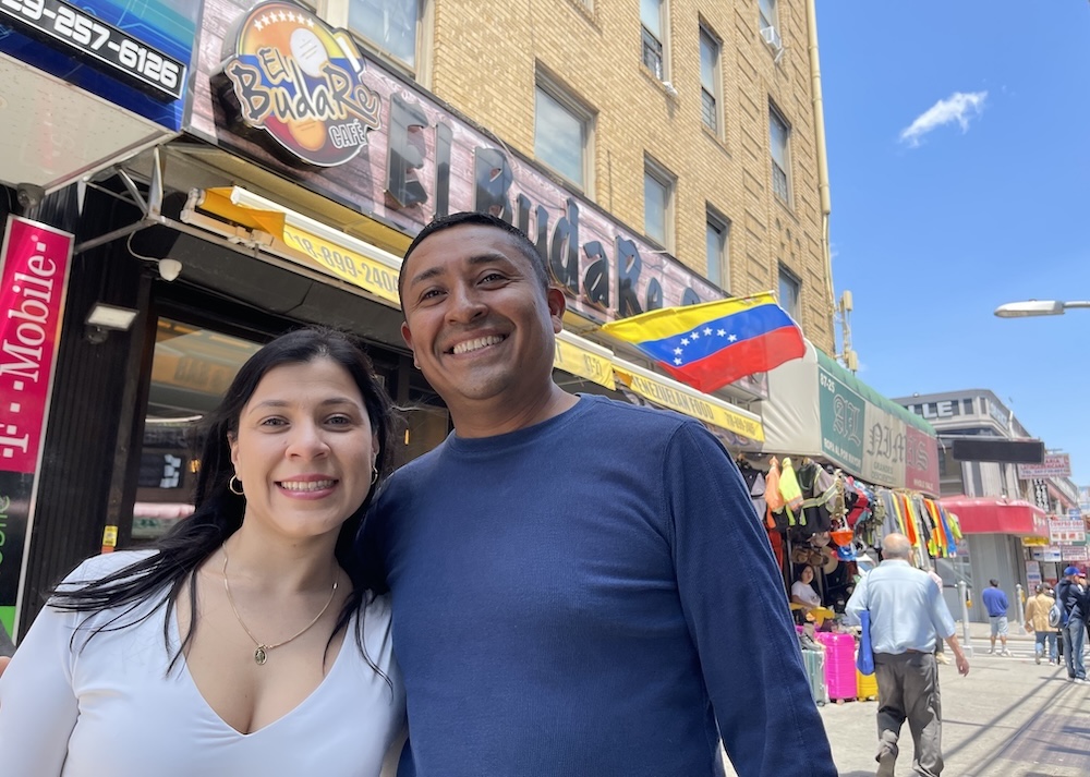 Sandra Sayago y Alfredo Herrero frente al restaurante venezolano El Budare Café. Foto Javier Castaño