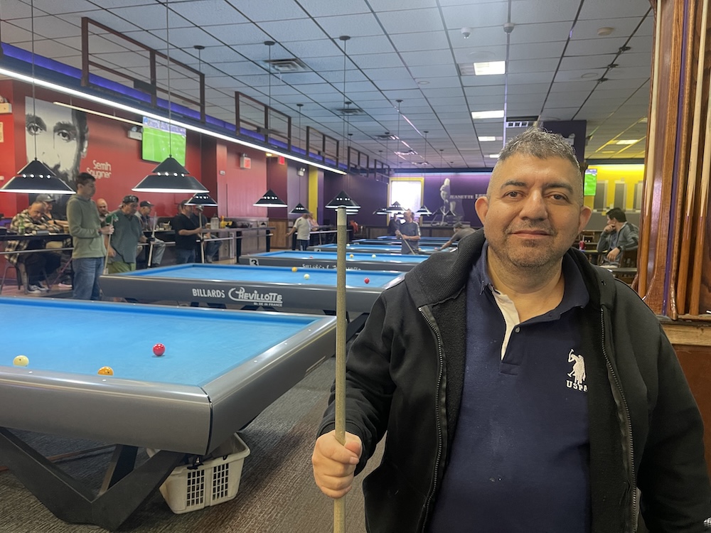 Silas González en el billar de La Roosevelt y calle 78 en Jackson Heights. Foto Javier Castaño