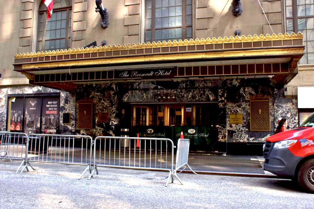 Entrada principal del Roosevelt Hotel en Manhattan. Foto Victoria Morán García / CITYLIMITS.