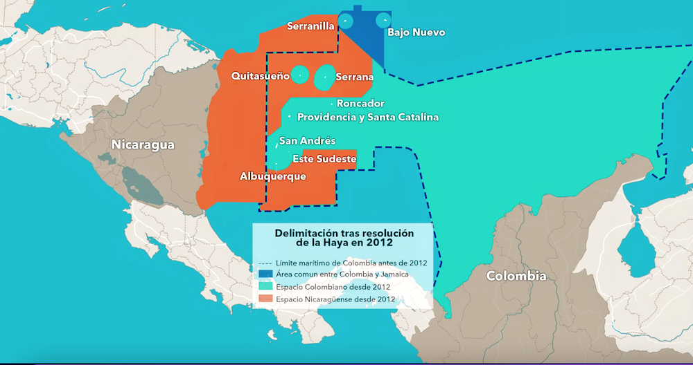 La disputa territorial entre Nicaragua y Colombia sobre el Archipiélago de San Andrés, Providencia y Santa Catalina, ubicado a unos 720 kilómetros del territorio colombiano y a 110 kilómetros de Nicaragua, es de larga data. Un fallo en 2012 de la Corte Internacional de Justicia de la Haya, el organismo internacional encargado de decidir las controversias jurídicas entre los Estados, dirimió una de varias demandas interpuestas por Nicaragua contra Colombia. El fallo ratificó la soberanía de Colombia sobre el territorio, que administraba desde 1803, pero por otro lado fue expandida la delimitación marítima de Nicaragua.