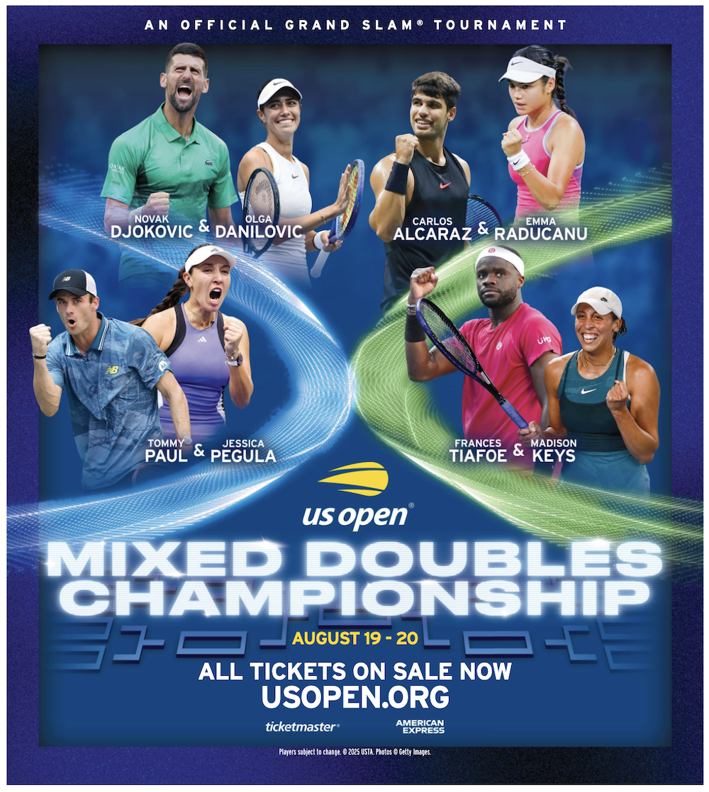 El 19 y 20 de agosto podrá adquirir boletos para el Campeonato de Dobles Mezclados del US Open, un evento rápido y dinámico con estrellas como Carlos Alcaraz, Emma Raducanu, Frances Tiafoe, Madison Keys, Aryna Sabalenka y Grigor Dimitrov.